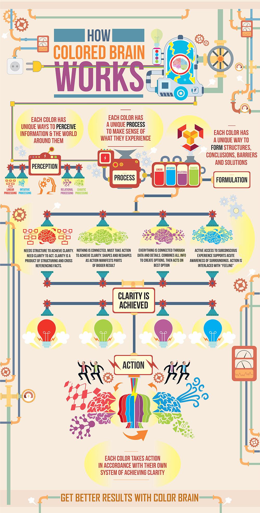 When faced with a decision, a problem, an idea or a task, the brain must first go through a unique process of “Ambiguity Relief”. We have identified four unique processes related to the amounts of neurotransmitters produced by specific genes and made it Simple to use and apply through the Colored Brain model. Colored Brain makes it EASY to understand unique communication requirements that often prevent getting everyone speaking the same language… and helps you CRUSH the barriers to create EASIER, FASTER and MORE EFFECTIVE communication across any group or relationship